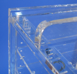 ※ 아크릴 화학적 특성상 휘발성용매(휘발유, 벤젠 등) 사용시 표면에 거미줄과 같은 미세한 크랙이 발생할 수 있으나 제품의 성능과는 무관합니다.